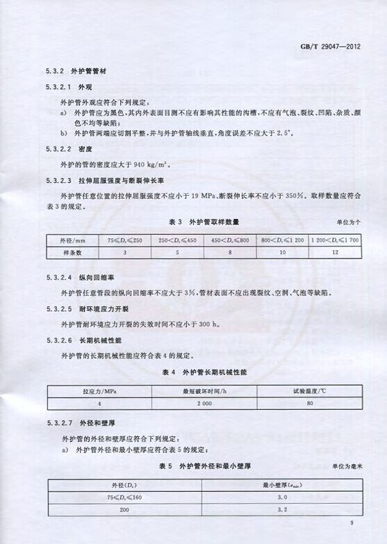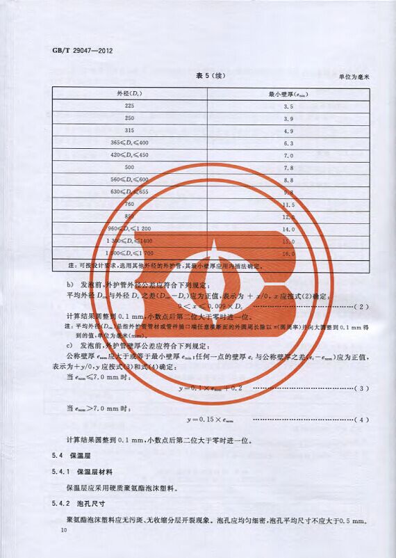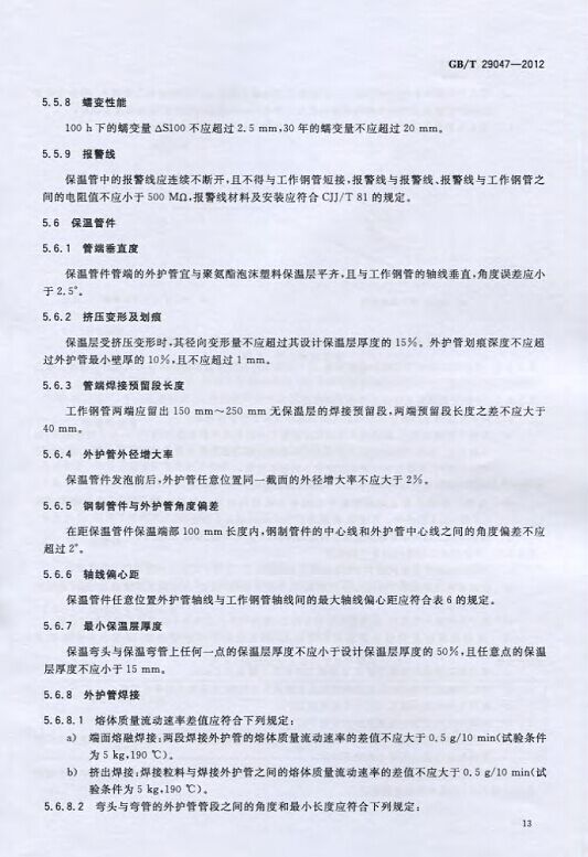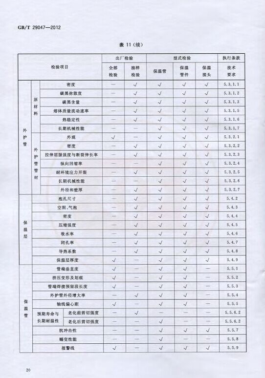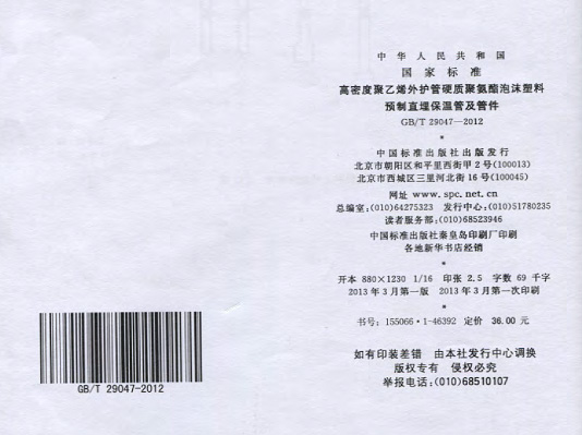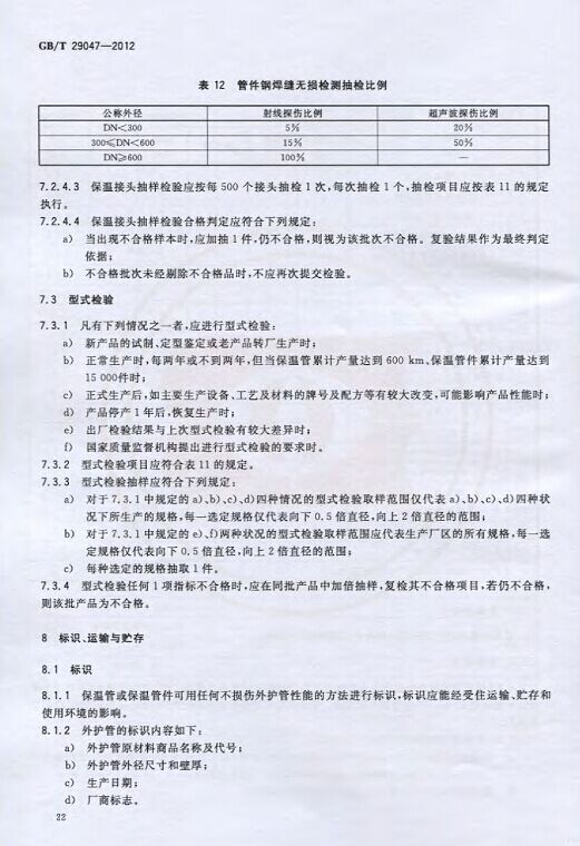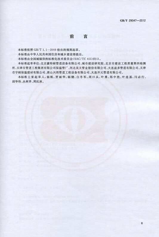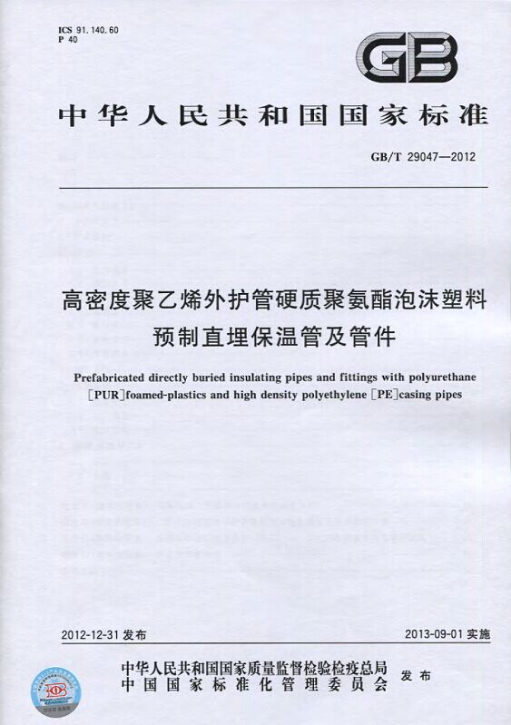 GB/T29047-2012 高密度聚乙烯外護管硬質聚氨酯泡沫塑料預制直埋保溫管及管件國家標準 來源:焱森高科裝備 日期:2016/5/3 瀏覽次數:1668 GB/T29047-2012 高密度聚乙烯外護管硬質聚氨酯泡沫塑料預制直埋保溫管及管件國家標準 上一篇:本公司生產的高密度聚乙烯預制直埋保溫管 上一篇:保溫鋼管的結構機理 分享到:0 用手機看 拍下二維碼,信息隨身看 試試用微信掃一掃,在你手機上繼續觀看此頁面。