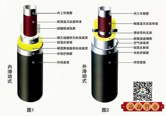 鋼套鋼保溫管保溫結(jié)構(gòu)依據(jù)滑動(dòng)方式不同分為:內(nèi)滑動(dòng)式與外滑動(dòng)式